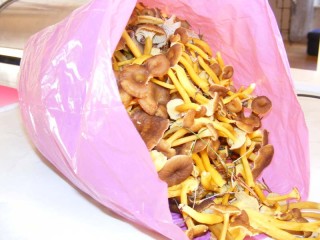 Var ute i skogen med grabbarna och gick verkligen offroad. Härliga mattor av mjuk mossa. Riktig tomteskog! Grabbarna for fram som skållade troll. När jag går där upptäcker jag massor av trattkantareller. Men vad skulle jag ta dom i? Självklart har man bajspåsar i alla fickor när man är hundägare. Gäller att alltid vara redo! Fyllde snabbt den rosa påsen. Blev en härlig kvällsmacka med trattisar. Mumsfillibabba!