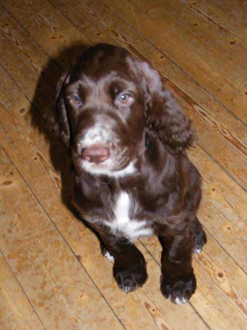 Lollo: Du är gullig du! Våran lilla pralin är en blandras mellan Eng. springer spaniel och pinscher.