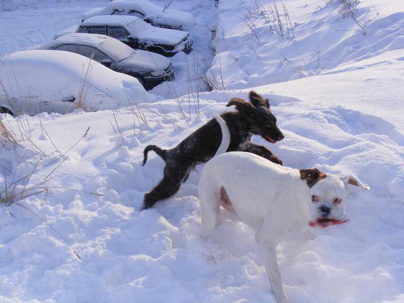 Mina planer om att åka slalom i helgen gick om intet. Minusgraderna var för många så vi stannade hemma och lekte i snön istället. Blev en rolig stund för både två och fyrbenta! :biggrin: