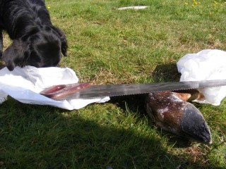 Idag packade jag ryggsäcken och begav mig ut i skogen för lite viltspår med grabbarna. När jag stod vid bilen och packade upp alla saker som krävs för att göra ett viltspår, så kom en dam förbi med sin lilla korg. Hon stannade och pratade lite. Kommentarer som vilket härligt väder och mysigt med picknick i skogen var klart givna. Jojo, hon skulle bara veta vad som gömmer sig i min ”picknickväska”. Två halvliters flaskor med blod och två älgskånkar på snöre. Mysigt värre! Nog tur att hon inte visste för då hade hon nog inte stannat och pratat med mig.