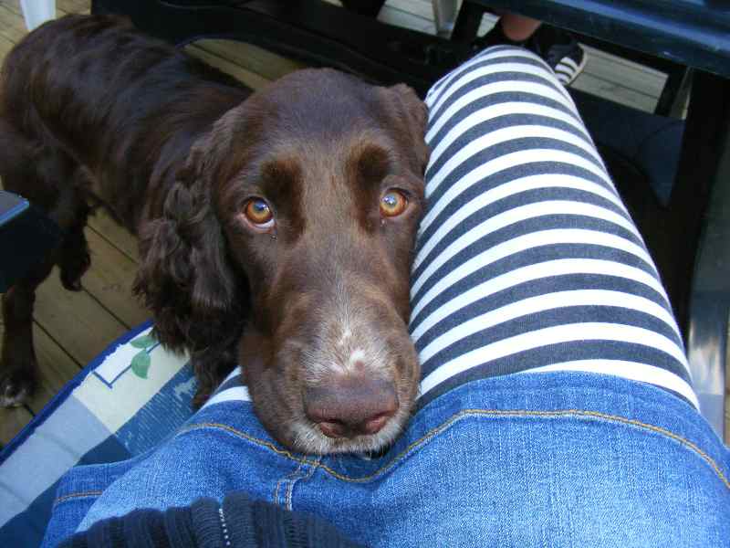 Det går verkligen framåt i min och Frejs träning. Det är tur att jag har Marie som bromsar mig ibland när jag ställer lite för höga krav på oss. Det jag märker är att Frej rent spontant lägger huvudet i knät på folk när man är på jobbet. Han är jätteduktig när man är ute och går med pensionärerna. Han kräver uppmärksamhet och pensionärerna får känna sig utvalda. Min duktiga lilla kille!