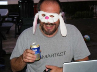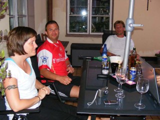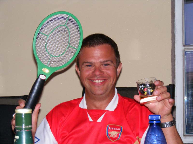 Mjumsen i sin nya tröja. Tänk så många dubbelrumpor man kan fånga med ett racket och ett glas med lite ”saft” i.